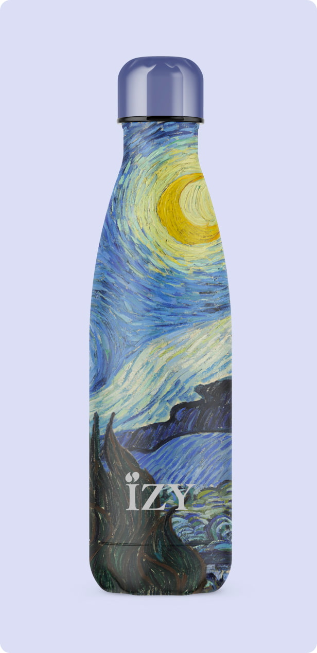 Toon je liefde voor kunst met de Starry Night-fles uit de IZY x Art Collectie. Geïnspireerd op Van Goghs iconische meesterwerk, combineert deze artistieke fles stijl en betekenis. Perfect om zorgeloos te genieten van je favoriete warme of koude drankje!