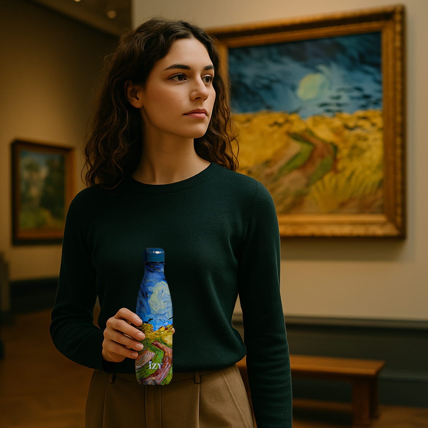 Toon je liefde voor kunst met de Korenveld-fles uit de IZY x Art Collectie. Geïnspireerd op Van Goghs iconische meesterwerk, combineert deze artistieke fles stijl en betekenis. Perfect om zorgeloos te genieten van je favoriete warme of koude drankje!