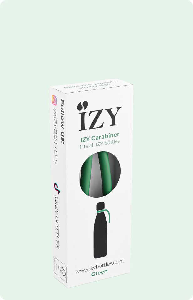 Dieser stylische grüne IZY-Karabiner ist perfekt, um Ihre IZY-Flasche überallhin mitzunehmen. Der aus robustem Silikonmaterial gefertigte Karabiner bietet angenehmen Halt und lang anhaltenden Bedienkomfort.