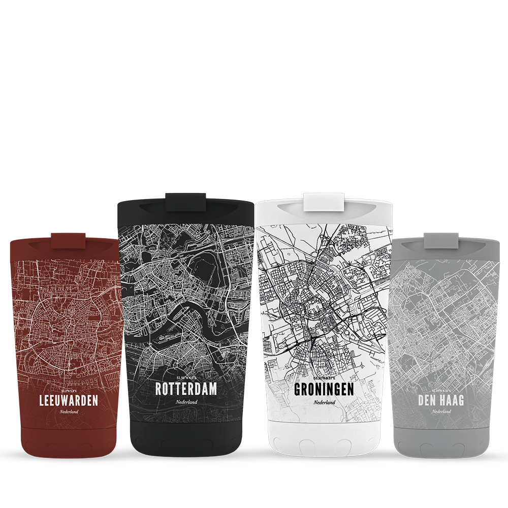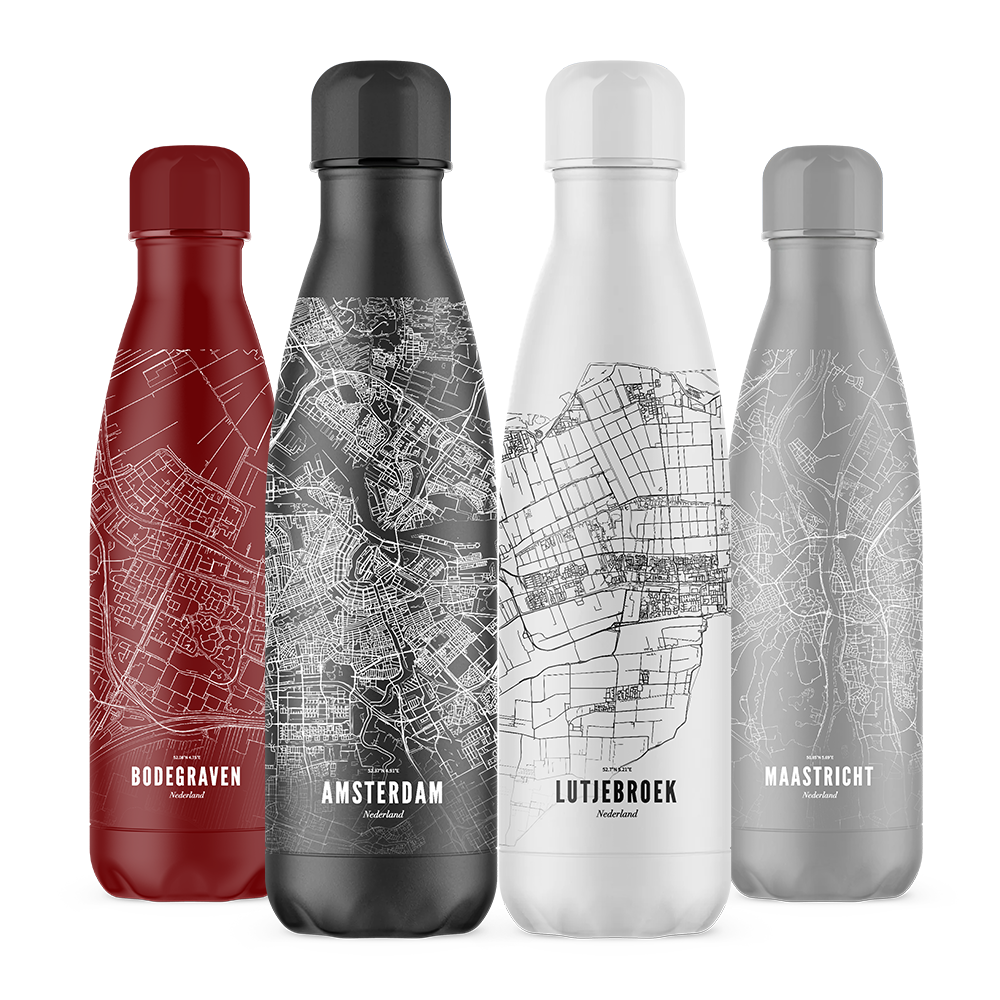 Je bent winnaar van een IZY Thermosfles (bottle) óf IZY Thermosbeker (mug) met een unieke kaart van je winnende wijk.