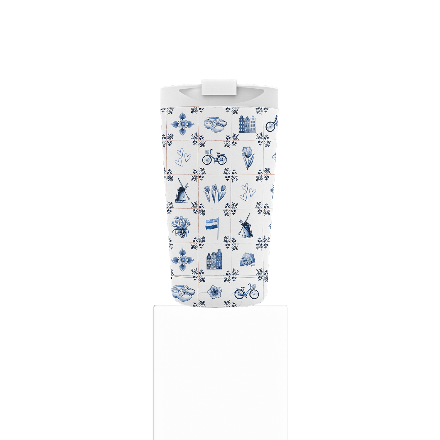 Breng een stukje Holland in je dagelijks leven met de Dutch Tiles koffiemok uit de IZY Delfts Blue Collectie. Het klassieke Delfts blauwe tegelpatroon, hét symbool van Hollands ambacht, siert deze thermos koffiemok van alle kanten. Geïnspireerd op de authentieke Delftse tegels die al eeuwenlang Nederlandse keukens en haarden sieren.