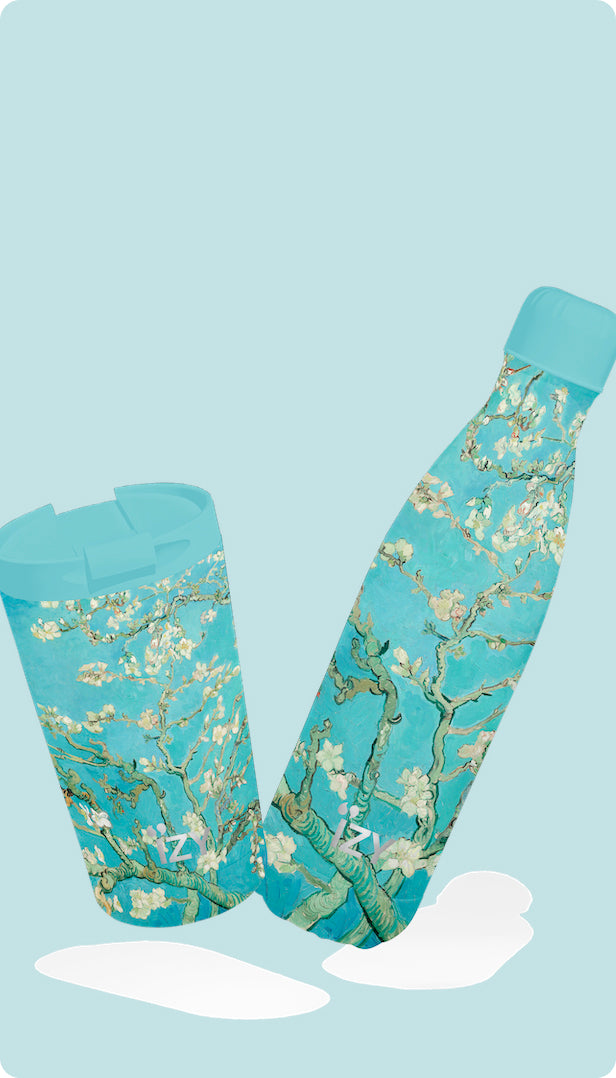 Laat je elke dag inspireren door de tijdloze schoonheid van Van Goghs meesterwerk Amandelbloesem. Deze exclusieve IZY bundle bestaat uit een dubbelwandige thermosfles (500 ml) en een handige thermosmug (350 ml), beide bedrukt met het iconische bloesemdesign. Perfect om je favoriete drank 24 uur koud of 12 uur warm te houden, waar je ook bent.