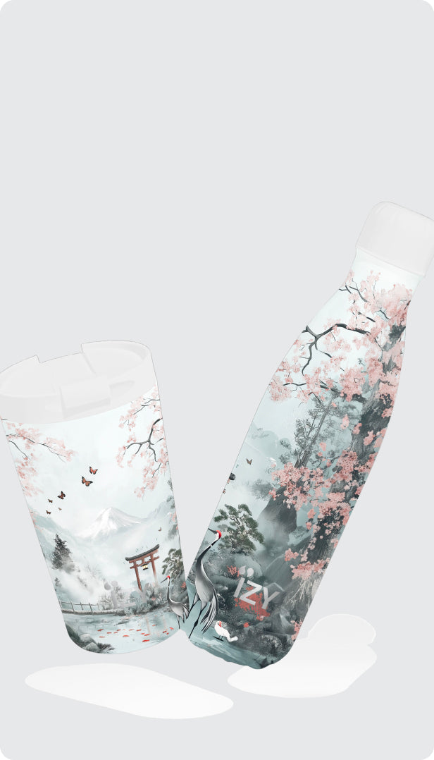 De bundel wordt geleverd in luxe geschenkverpakkingen, waardoor dit niet alleen een praktisch, maar ook een stijlvol en betekenisvol cadeau is – een vleugje Japanse magie om te koesteren of te delen. Net als bij al onze producten doneert IZY per fles en mok 1000x de inhoud in schoon drinkwater, en is de productie volledig CO₂-neutraal.